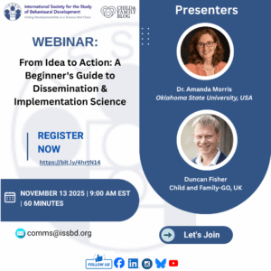 The International Society for the Study of Behavioral Development (ISSBD) and Child & Family Global Outreach (CF-GO) have partnered to offer a 12-part webinar series designed to help early career scholars share developmental science beyond academia and into the hands of parents, practitioners, and policymakers.